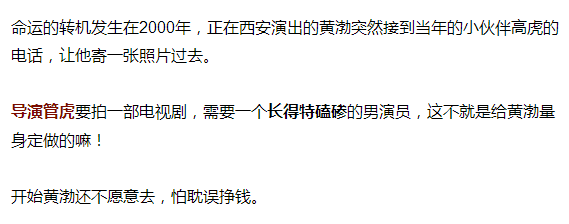 导演宁浩正巧去探管虎的班,对着黄渤拍案叫绝,问管虎:“这民工太会演戏了,你从哪儿找到的?”