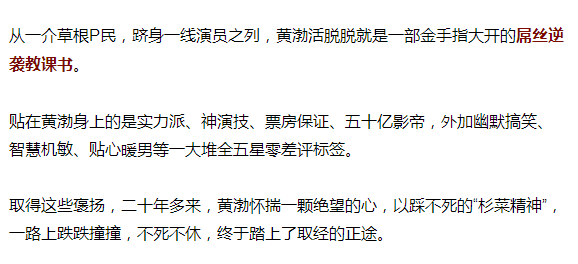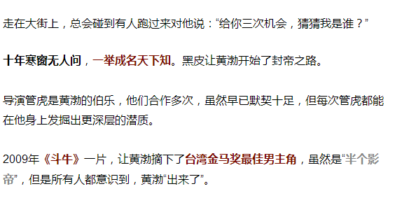 这句话其实是变相的认可,从一直走在时尚最前沿的歌手+最时髦的舞蹈教师,到社会最低层的农民工,黄渤完成了他的演员身份的转变。