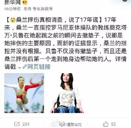 今日,新华网新浪微博发了“桑兰17年前摔伤真相”的微博,引起了众多网友的讨论。