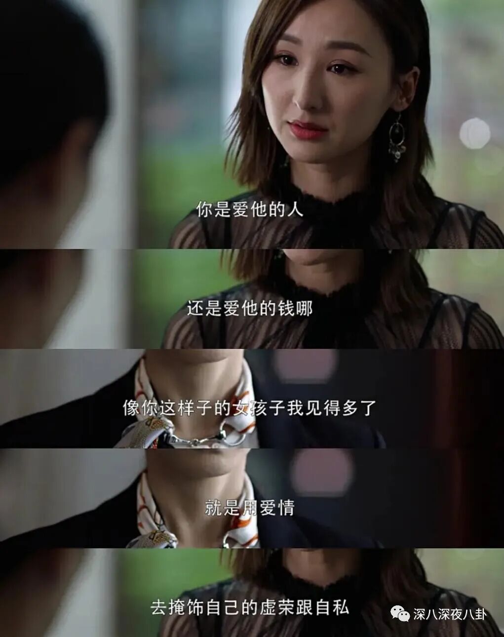 这个角色其实对演员来说,是天降好饼。角色非常立体,有好的一面,也有人性里不那么光明的一面,不算圣母,不算绿茶,内心向往纯粹的爱情,又希望这份爱情里自己的物欲可以得到充分的保障。