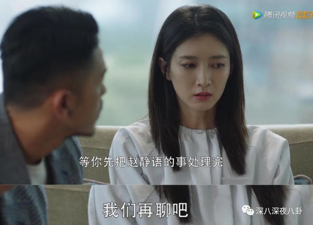 最后丢下一句话:等你把赵静语的事情处理完了,我们再聊吧。只这一句话,给自己,也给梁正贤留了余地,知三而三,还在等着自己可以小三上位,但又不敢明目张胆当小三,所以抛下这句“等你处理完”。这怎么说呢?就是普罗大众里的“三观不正”吧。