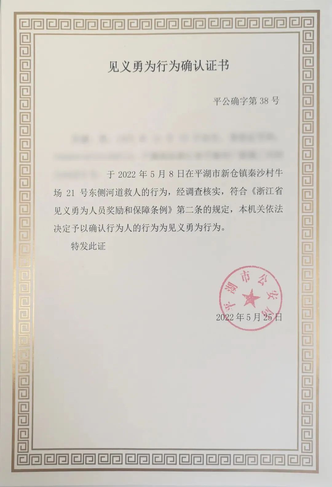 5月8日中午12点,正在新仓镇平廊公路与金沙路十字路口执勤的吴健,突然看到北侧一名新居民火急火燎地跑过来,一边跑还一边喊:“北面的河里有人落水了!”