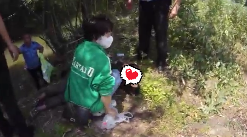 发现目标后,吴健立即奔到最近的岸边,只见落水女子正在用手划动河水,想要将自己划到岸边。见此情景,吴健环顾四周,看到边上正好有一片小竹林,就顺势拔下一根竹子往河中伸去,并喊着让对方抓住,自己可以借此把对方拉到岸边救上来。