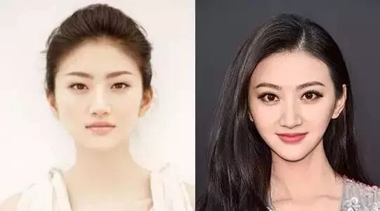 唐嫣的上庭比较大,所以她比较少露出额头,上图是即使露出来也会用一些小饰品作为调整和掩盖,平时会留刘海调整下不那么均衡的比例。戚薇的下庭是比较短的,这也是我们传说中的没下巴,这并不是什么特别大的问题,只是不大耐看。