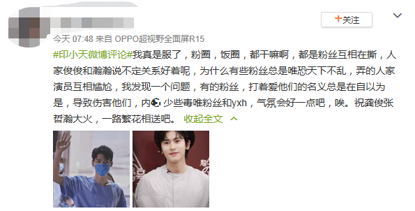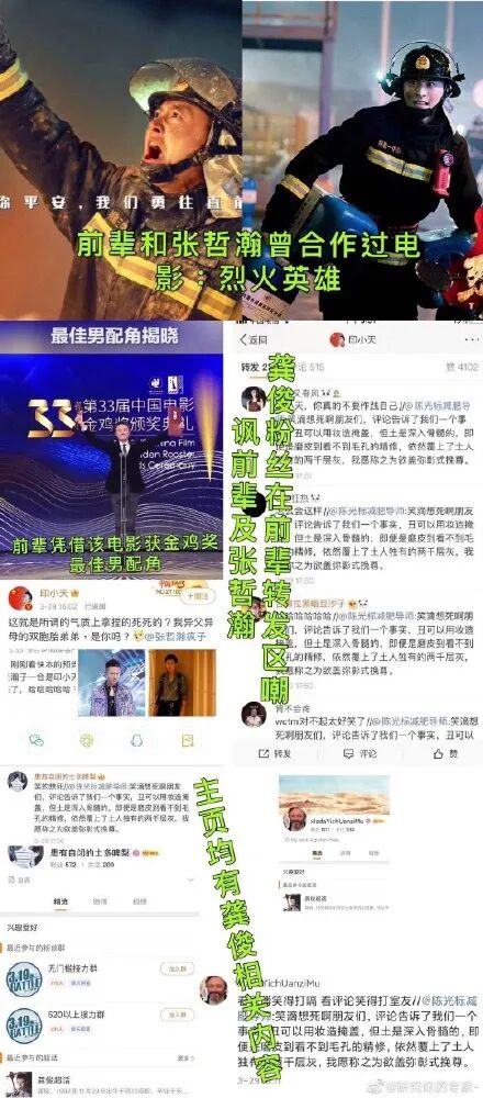 张哲瀚粉丝也说勿cue,独美,并且po出来不少龚俊粉丝骂张哲瀚的证据,觉得惨还是张哲瀚惨,这么一闹,整得前辈都尴尬得只能编辑微博了。