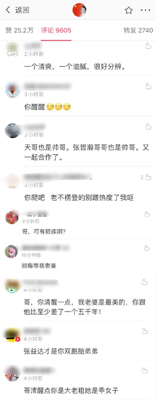 要么就是直接开麦让他“爬”了,表示清爽和油腻很好分辨,你一个大老粗比张哲瀚至少差了五千年,有眼疾就去治,别侮辱我老婆。