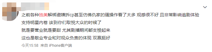 就拿营业这件事来说吧,剧播出期间艺人要是互动得少了,会diss他不会营业、没有心。互动得多了吧,又说对方故意炒cp、倒贴…就更别提剧完结之后的后续联动了,多说一句都可能会踩进某些粉丝的雷区。