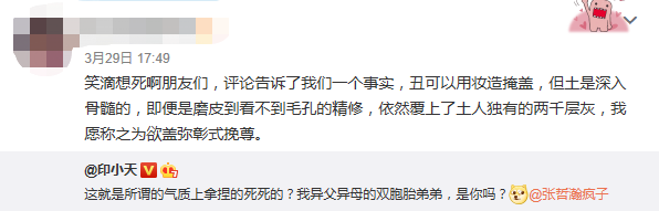 相比这些,还有人骂得更大声更难听,直接说丑可以用妆造掩盖,但土是深入骨髓的。不仅骂了张哲瀚,还骂了印小天。