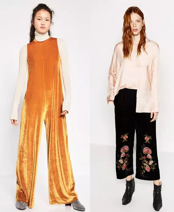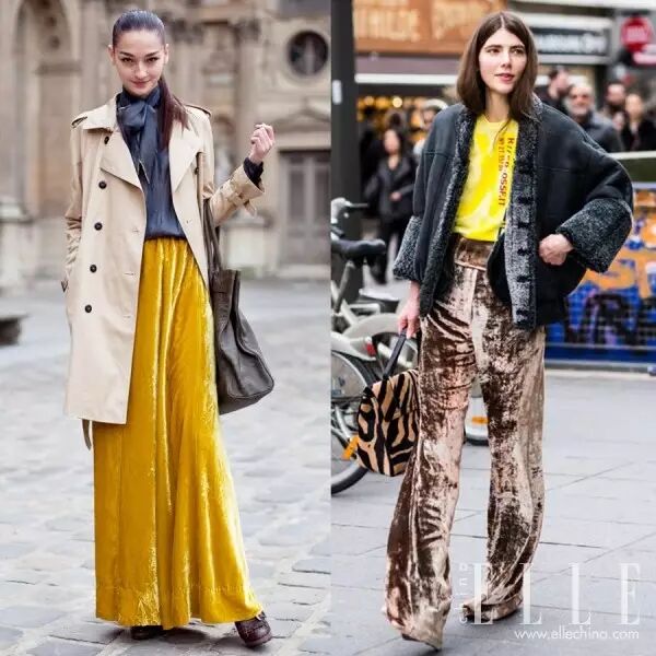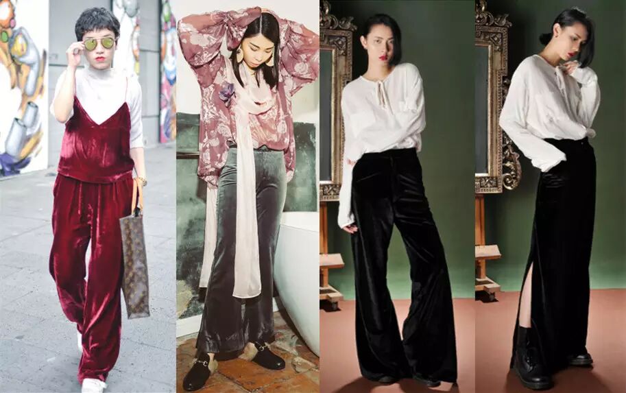 裤装的话,建议腿粗的北鼻慎选,因为天鹅绒的光感效果,会让你的腿看上去更粗,所以咱们穿裙子去~乖~