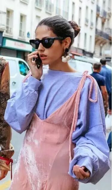 天气冷的话,可以在外面加件秋季外套外套可以选择同色系或百搭色,就不会掩盖掉天鹅绒的光芒啦。