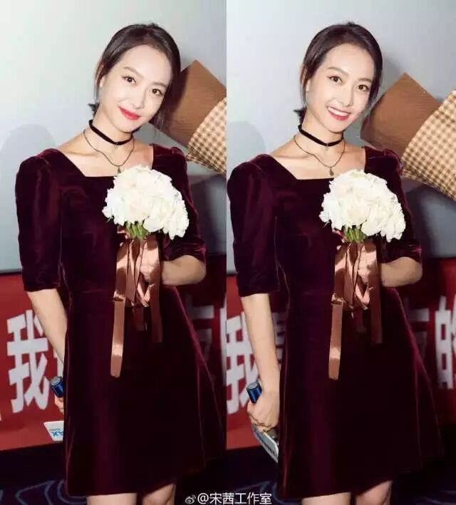 不得不说的是,宋茜抓住了今年秋冬的流行元素,古典的酒红色配上简单的choker,超级优雅范儿有木有!
