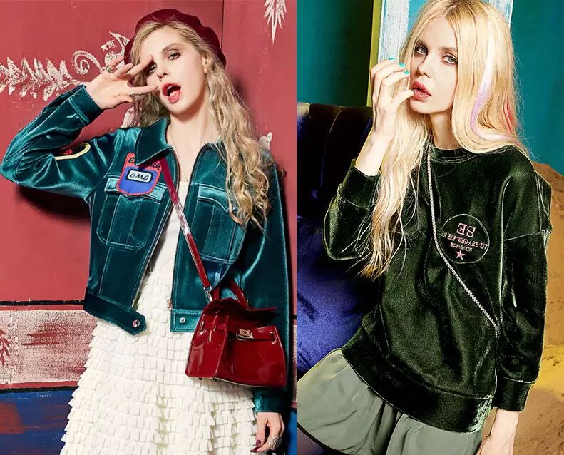 如果北鼻们想尝试丝绒质地的衣服,而又担心自己驾驭不了,那么就可以试着从天鹅绒外套、上衣开始。