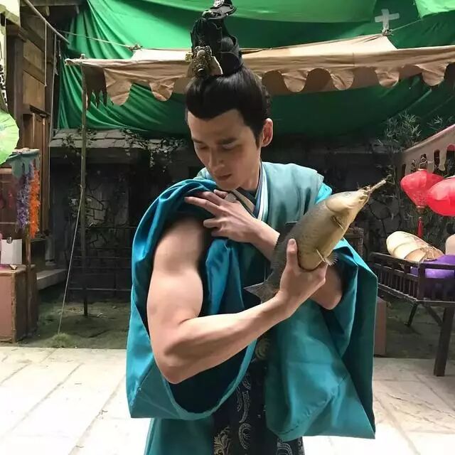 进剧组拍戏,没有健身房的时候,不管是什么东西都可以拿来当道具锻炼。