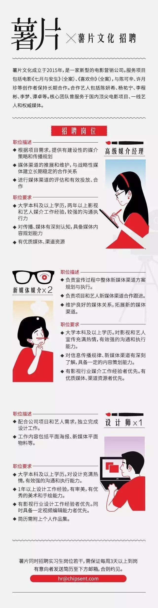 电影《七月与安生》营销公司招聘!合作艺人还有陈妍希、杨祐宁 娱乐招聘指南 港台男星 2017-09-17 17:45:09 408 创作不易,用心坚持,欢迎请BaGua喝几杯爱心咖啡!打赏并支持本文 打赏并删除本文 招聘单位:薯片文化招聘职位:高级媒介经理、新媒体媒介、设计师、实习生工作地点:北京应聘方式:[email protected]招聘详情如下点击“阅读原文”,查看更多往期招聘 创作不易,用心坚持,欢迎请BaGua喝几杯爱心咖啡!打赏并支持本文 打赏并删除本文 感谢您的支持鼓励,我会继续努力的!文章地址:用户邮箱:打赏金额:USDT 请输入数字点击”去打赏“,即可进行打赏支持本文章哦 杨祐宁 About the Author 娱乐招聘指南 功能介绍:每天告诉你进入娱乐圈的各种姿势!(独家一手的娱乐产业招聘信息)关注我,距离娱乐圈更进一步。 Related Posts 乐华娱乐大招聘!韩庚程潇孟美岐吴宣仪王一博范丞丞的公司 2019-02-22 18:41:27 姚晨公司坏兔子影业招聘资深艺人宣传! 2018-11-12 18:54:03 尚雯婕迪玛希公司 黑金音乐招聘经纪人、宣传、企划! 2018-10-06 13:05:08 黄小蕾公司统和天成影视招人啦!艺人宣传快到碗里来,等你加入喔~ 2018-09-17 16:15:12 黄英工作室招聘啦!脑洞大活又好的朋友看过来~ 2018-08-16 17:46:50 发表评论
