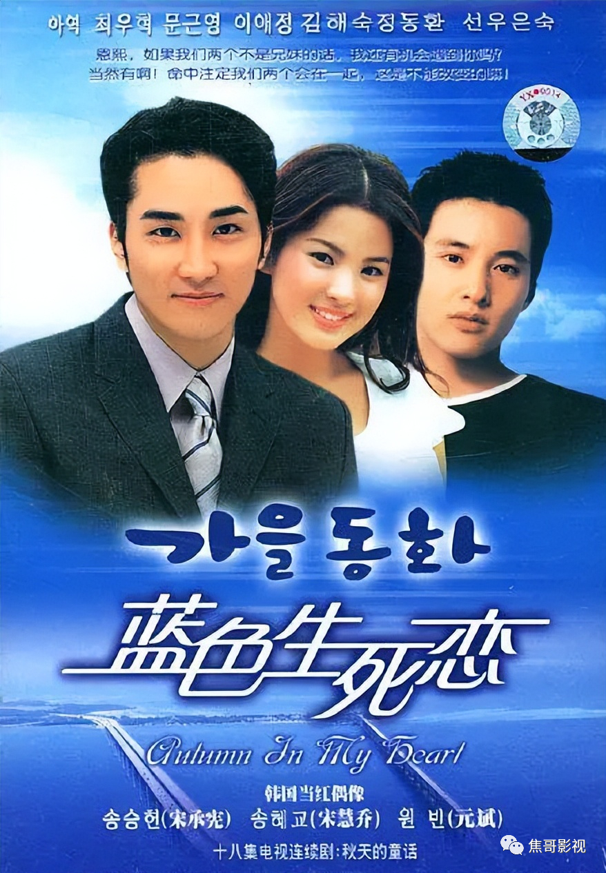 《蓝色生死恋》豆瓣评分8.3分,系列电视剧《蓝色生死恋》之《秋天的童话》第一部,由宋慧乔、宋承宪、元斌领衔主演,尹锡湖执导。该剧几位主角间错位的命运,纠葛的感情,奠定了整部剧的悲情基调,可说是早期韩剧的代表作。稳坐韩国2000年电视剧冠军的《蓝色生死恋》是八大自播出韩剧以来成绩最为傲人的一次,在香港同样轰动。