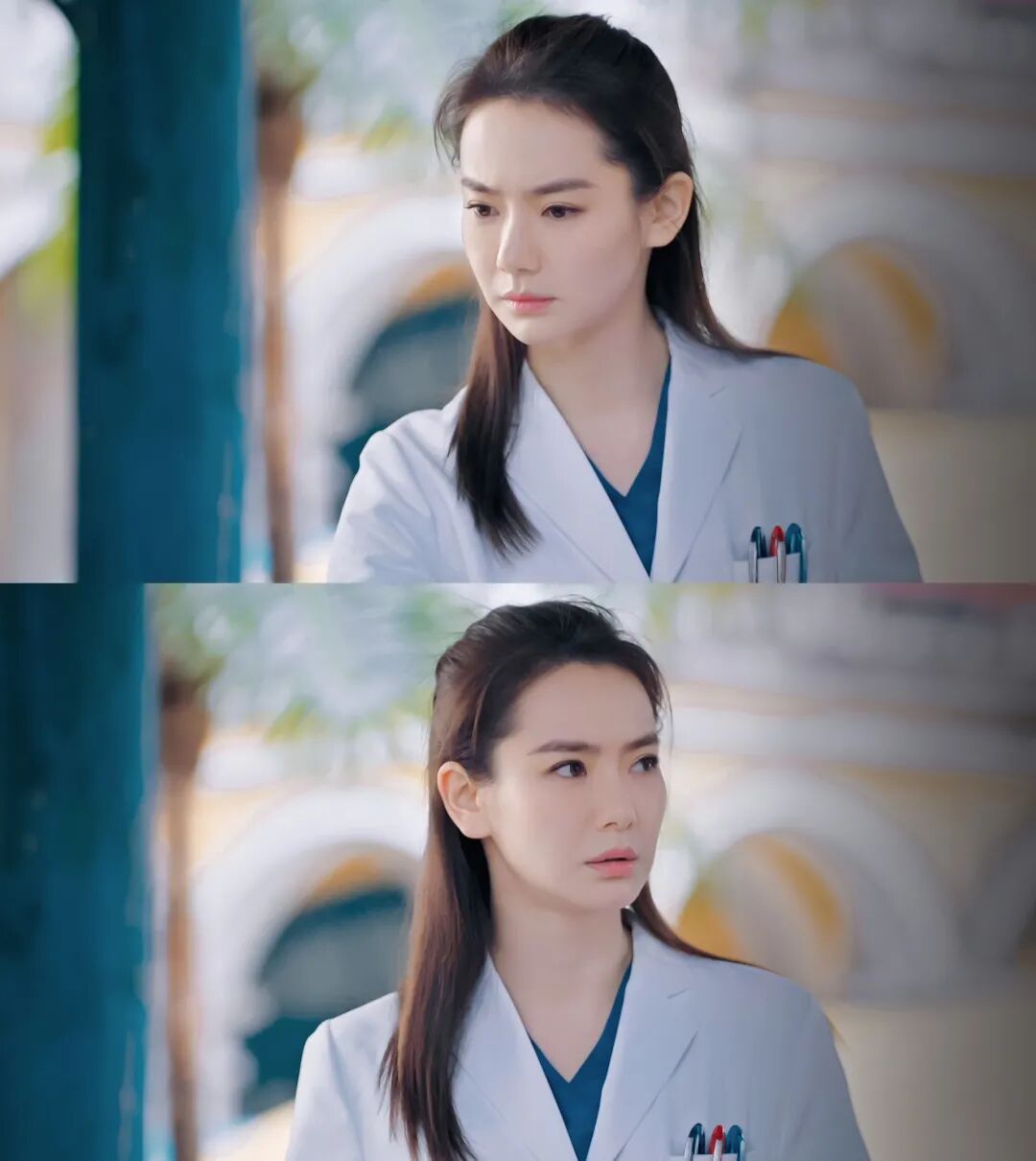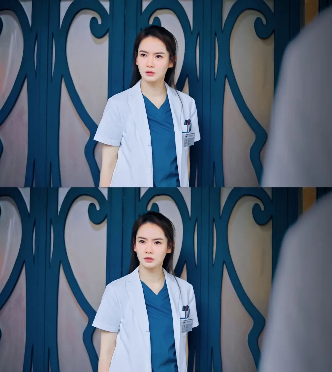 既然是医生,自然要从最常规的白大褂说起。周悦的白大褂很修身,胸前的口袋装东西很方便,工牌往上就是医生必备的黑红蓝三色笔。