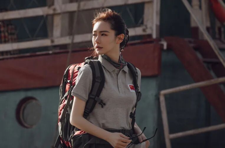 浅色的短袖衬衫搭配深色运动裤,海岛穿搭so cool~胸口的国旗标志彰显了援外医护人员的身份,超实用的登山背包可以容纳很多生活必需品,领口的丝巾是热带岛屿防晒防风沙必备。