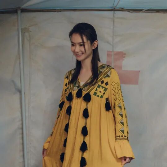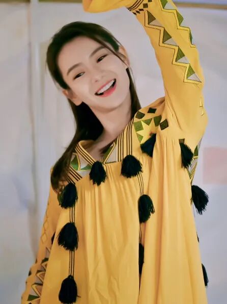 偶尔也会有几条令人眼前一亮的裙子,比如这一身姜黄色民族风重工刺绣的流苏连衣裙,很适合海边度假。姜黄色与海风、沙砾也都很配喔~
