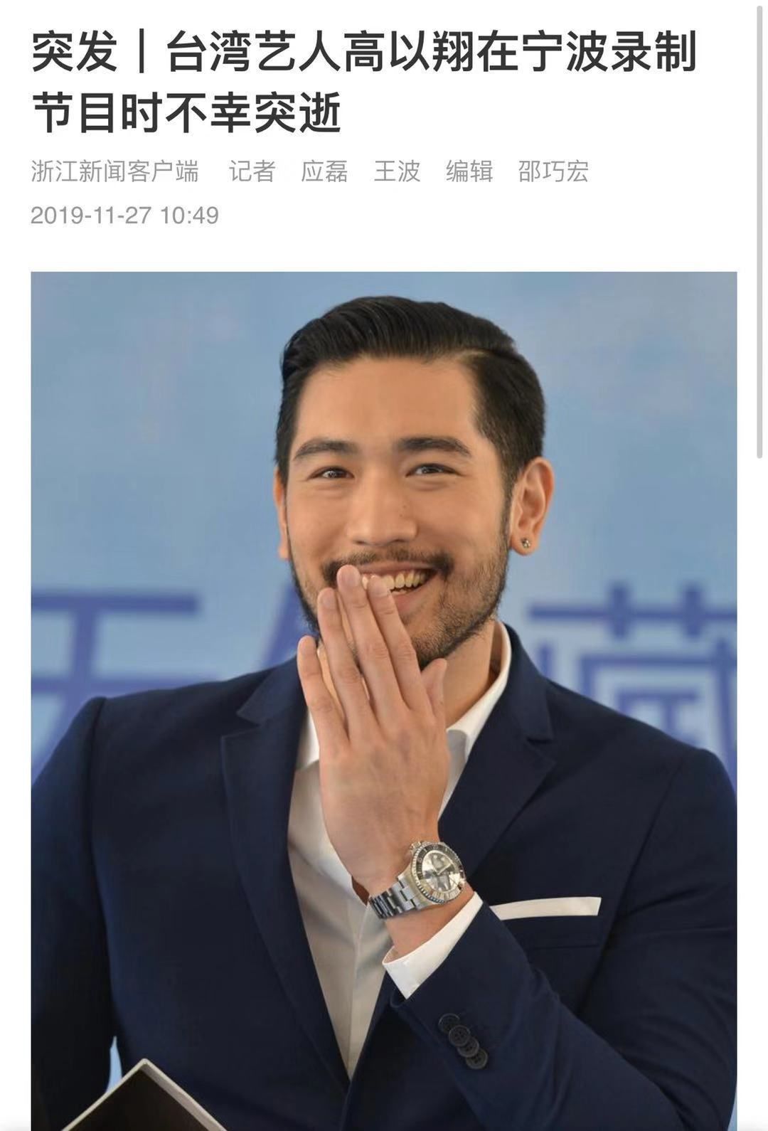 此前报道:浙江媒体:高以翔突然去世。