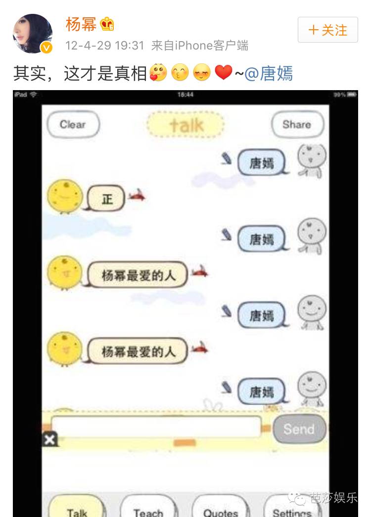 小黄鸡自动回复正流行的时候,大幂幂也是借小黄鸡像糖糖示爱!