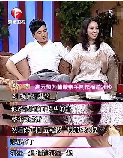董璇拍戏时很想吃榴莲冰沙,他就大汗淋漓地跑遍横店,买冰棍给她自制冰沙。