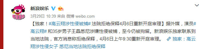 结果,3月26日刚杀青,高云翔就在几小时之后涉嫌性侵,这故事发展也太迅猛了。