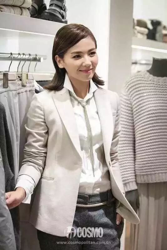 刘涛在《欢乐颂》中身穿白色衬衫外搭黑色休闲西装外套,标准的职场穿搭范儿