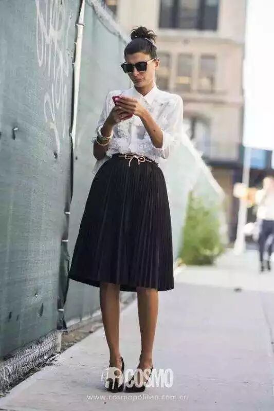 白衬衫想穿出女人味,还是要搭配半身裙,不同的半身裙可以穿出不同的感觉。