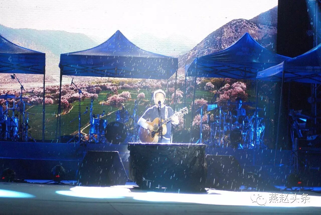 5月7日晚上,华耀城之夜·许巍2016致敬青春演唱会在河北武安体育场雨中激情开唱!摇滚浪子许巍带领他们豪华班底乐队、《王者归来》总冠军“男版王菲”周洋、新晋摇滚乐队DISH乐队和新香水乐队为现场上一万五千名歌迷们带来一场音乐盛宴。演唱会当晚虽然下起了淅淅沥沥的小雨。