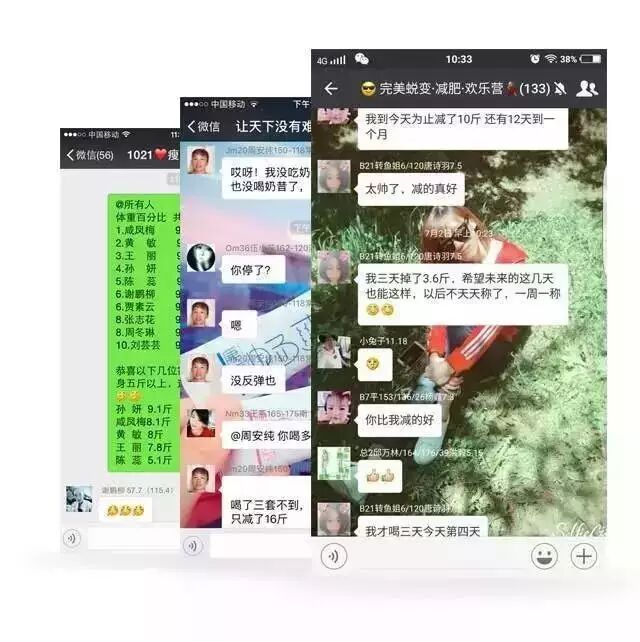 光有专业的指导还不够,减肥的胖友们往往需要互相激励,李文的教练团队专门给这些客户建好了微信群,让他们能够互相见证,互相鼓励,增强信心。