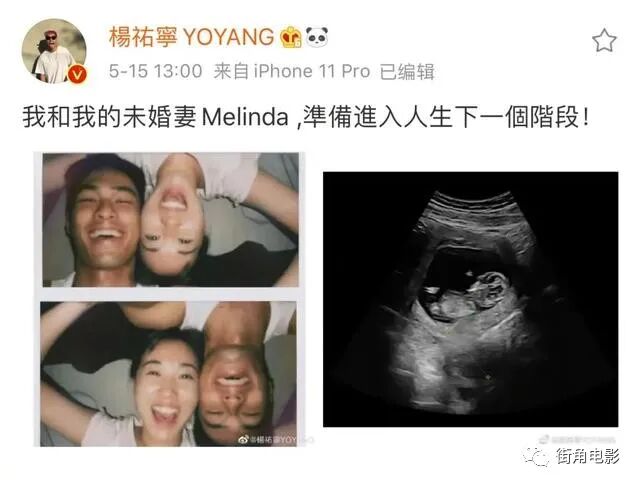 今年5月15日,杨祐宁突然宣布:“我和我的未婚妻Melinda ,准备进入人生下一个阶段!”这是他第一次公开女友的照片,同时还放了宝宝B超照,宣告即将升级当爸爸!