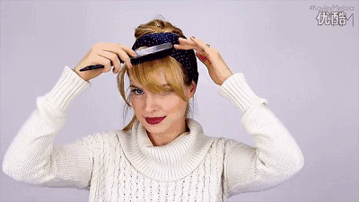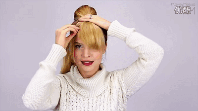 Step 3:将前区的马尾往额前翻,并且调节好需要的长度,用夹子固定好位置,如果想让交界处不那么明显,可以用发带来修饰。