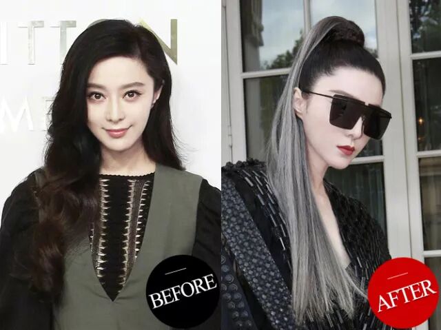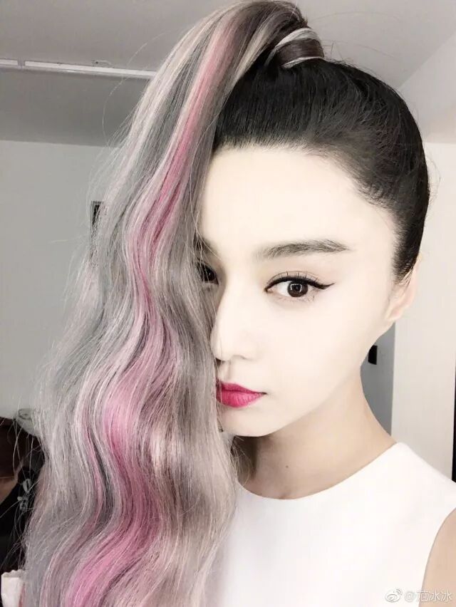 觉得马尾颜色太单一,那不妨加一缕跳色的假发呀!范冰冰这不就给大家做示范了嘛~