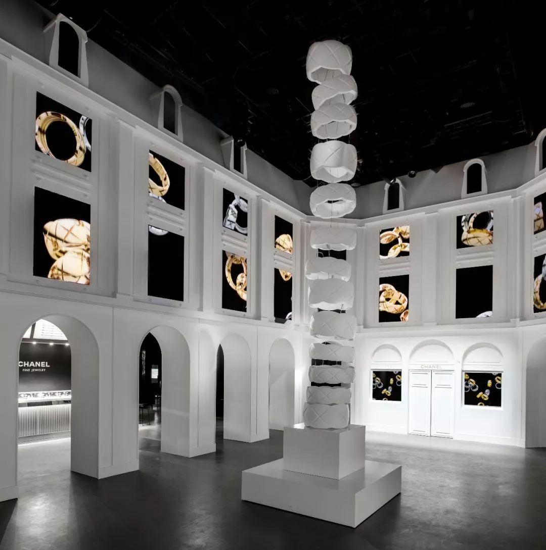 而香奈儿戒不掉COCO CRUSH体验展就把芳登广场“搬”了过来,挑高的空间非常宏伟,正中央是由COCO CRUSH戒指层叠而成,宛如巴黎芳登广场中央的凯旋柱 。