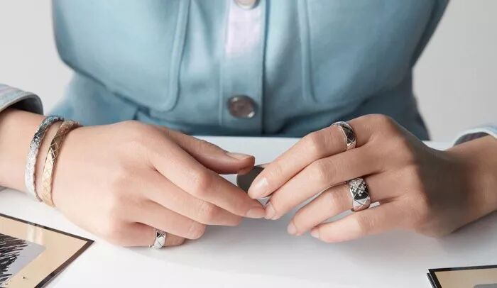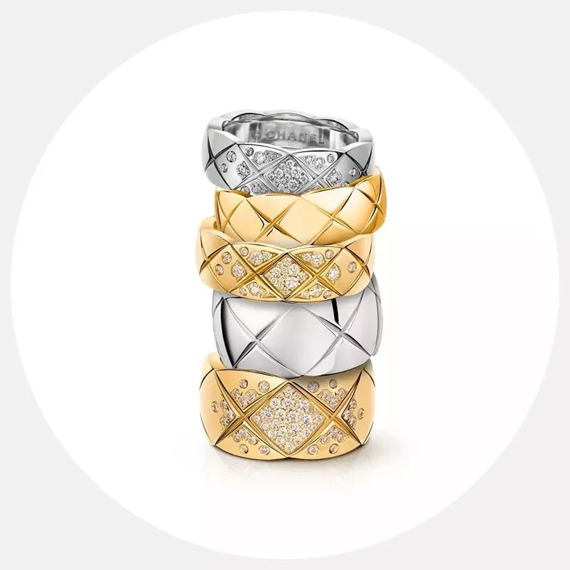 2015年推出的香奈儿高级珠宝COCO CRUSH系列也是向品牌经典的菱格纹图案致敬。简洁的菱格纹在COCO CRUSH系列中幻化出了无限可能,简洁优雅、时髦摩登。