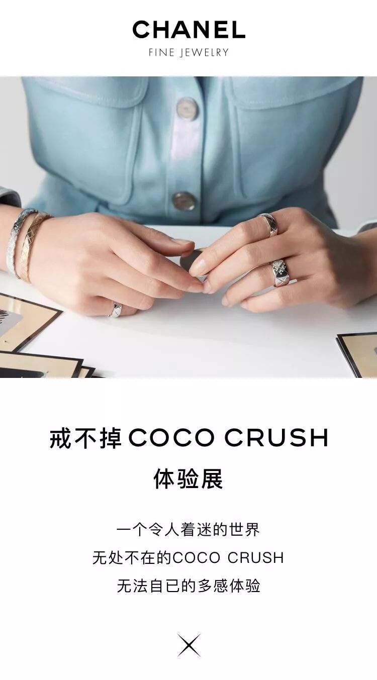 最后,香奈儿戒不掉COCO CRUSH体验展将于2018年4月19日至22日期间,在北京嘉德艺术中心对外开放,快去现场感受这份“戒不掉”的CRUSH吧~