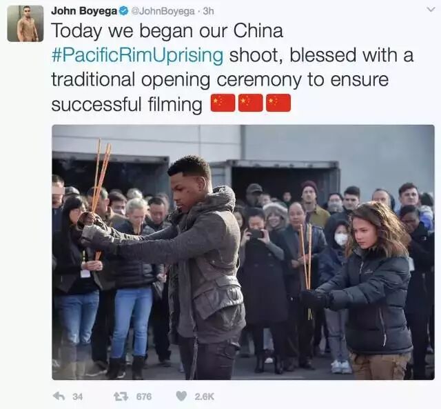《环太平洋2》的全球大背景使得导演给片子注入了很多民族元素。片子还有一部分是在国内取景的,开机的时候约翰·波耶加还带头烧香了呢,相当接地气。