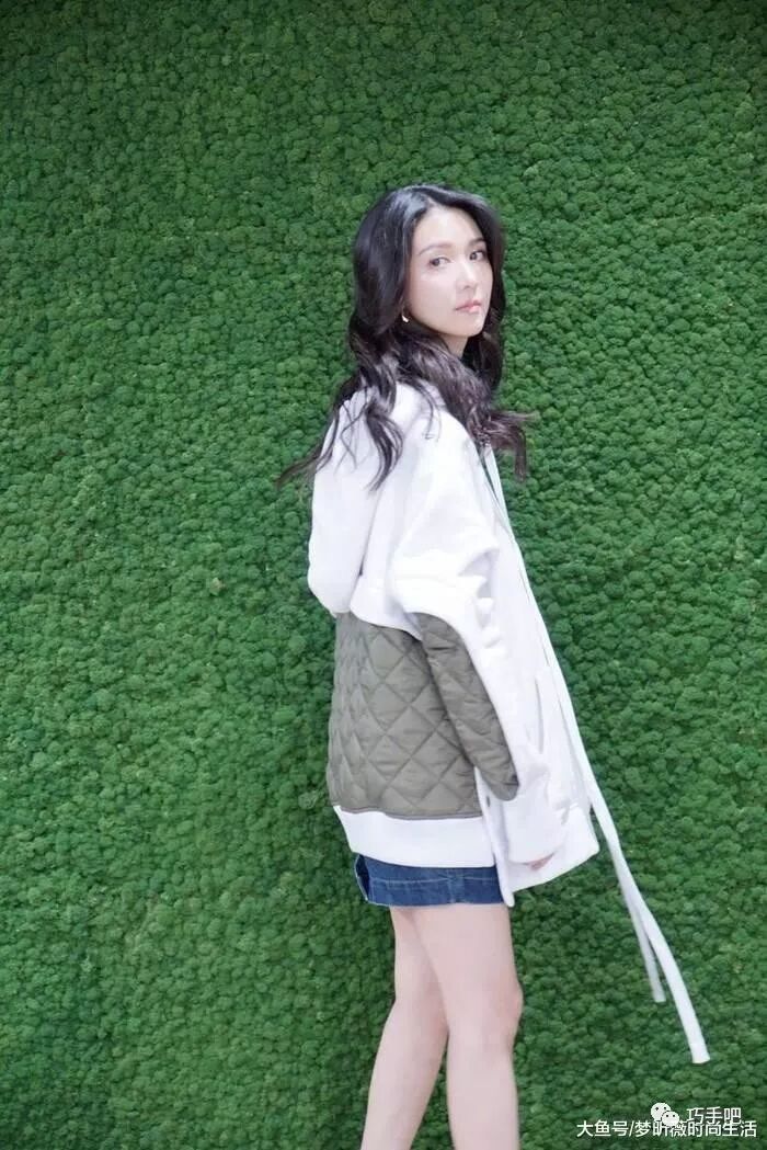 而这一身白色拼接连帽卫衣搭配牛仔短裤的装扮又变得充满青春活力,休闲时尚又不失少女感,设计感十足的连帽卫衣,给人简单大方又时尚大气的美好感受,修长美腿十分吸睛,轻松自然的状态更是让人迷恋不已。