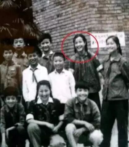 从这张黑白照片中看出,这是刘晓庆和同学的合影,当时,小姑娘们都戴着红领巾,编着麻花辫,极富时代特色。
