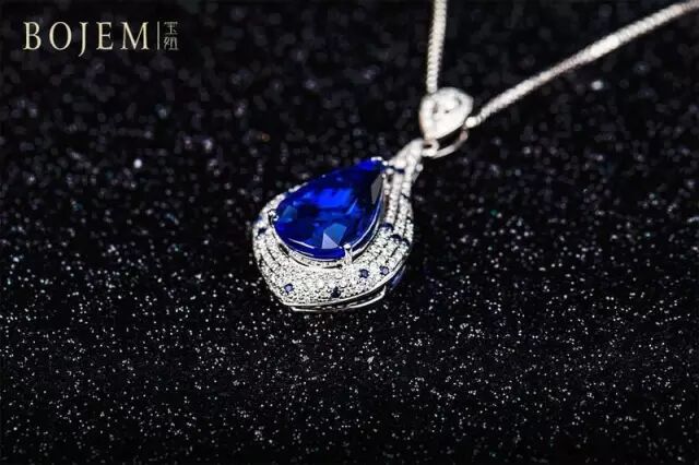 佳佳专场拍卖的最后一件拍品是一条6.65克拉椭圆镶嵌钻石的坦桑石吊坠。