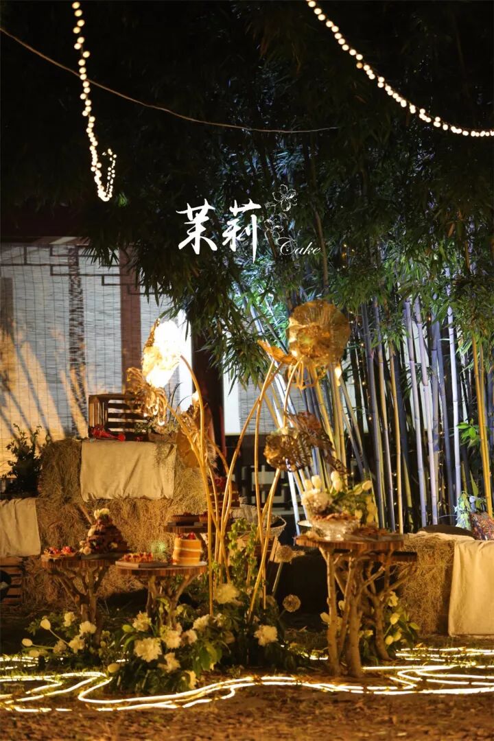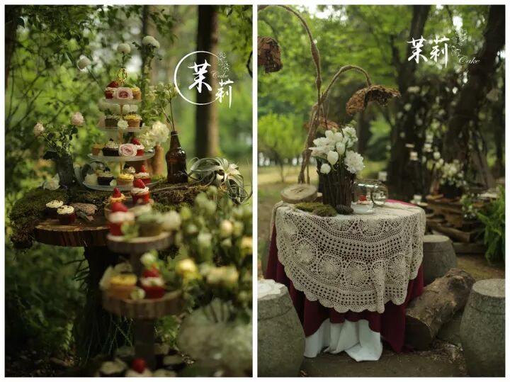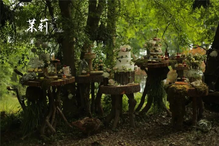 去年在东湖梅园完婚的撒贝宁,甜品台也是完全森系的感觉。