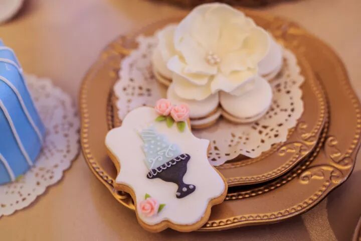 像他们的爱情一样干净而美好,甜品台选择了清新的白蓝色调,经典的翻糖蛋糕,美式cupcake、饼干、棉花糖、点心、巧克力、饮料,一应俱全。