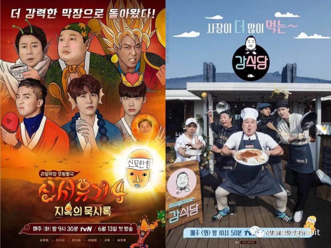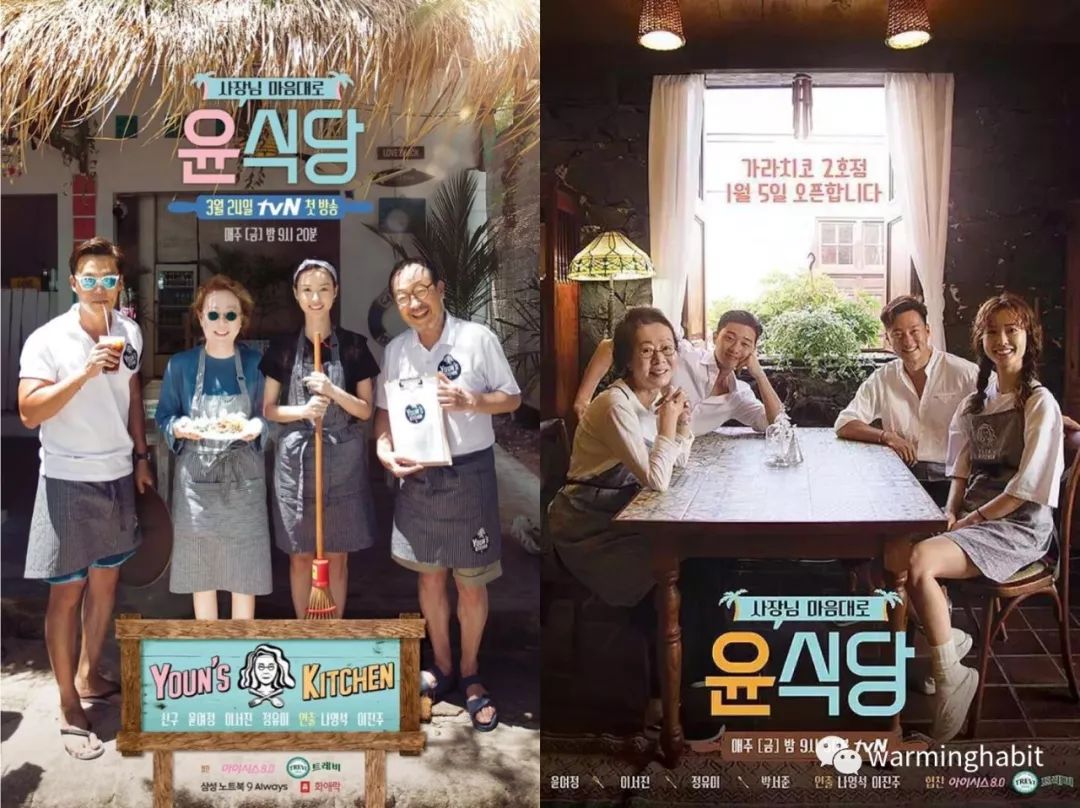 第一位当然要给罗pd,从《三时三餐》到《尹食堂》再到《姜食堂》,老罗把韩国食物的海外推广做到了极致的好。《三时三餐》是讲述自给自足有机农业生活实境的综艺节目,出演成员远离城市生活,来到农村篇(李瑞镇,玉泽演)和渔村篇(车胜元,刘海镇,孙浩俊)以及海洋牧场篇(李瑞镇,Eric,尹均相)自给自足解决三餐问题。目前为止已经出了七季,有食物白痴李瑞镇,有扛起家庭责任的玉泽演,视做饭为乐趣的车婶,生活小能手刘爸爸,单纯善良的儿子浩俊,还有Eric的神奇料理方式,任劳任怨的忙内尹均相。拍摄初期用一颗种子,到方块菜地,整片玉米地,奴隶们的生存便开始了。在朴素的乡村,大家为一顿饭而努力,在过程中体会一顿饭的真正的价值,看完这些你已经对韩国料理做到了信手拈来的程度,他们做了哪些韩料理,文字版在这里 新浪微博:warming·habit