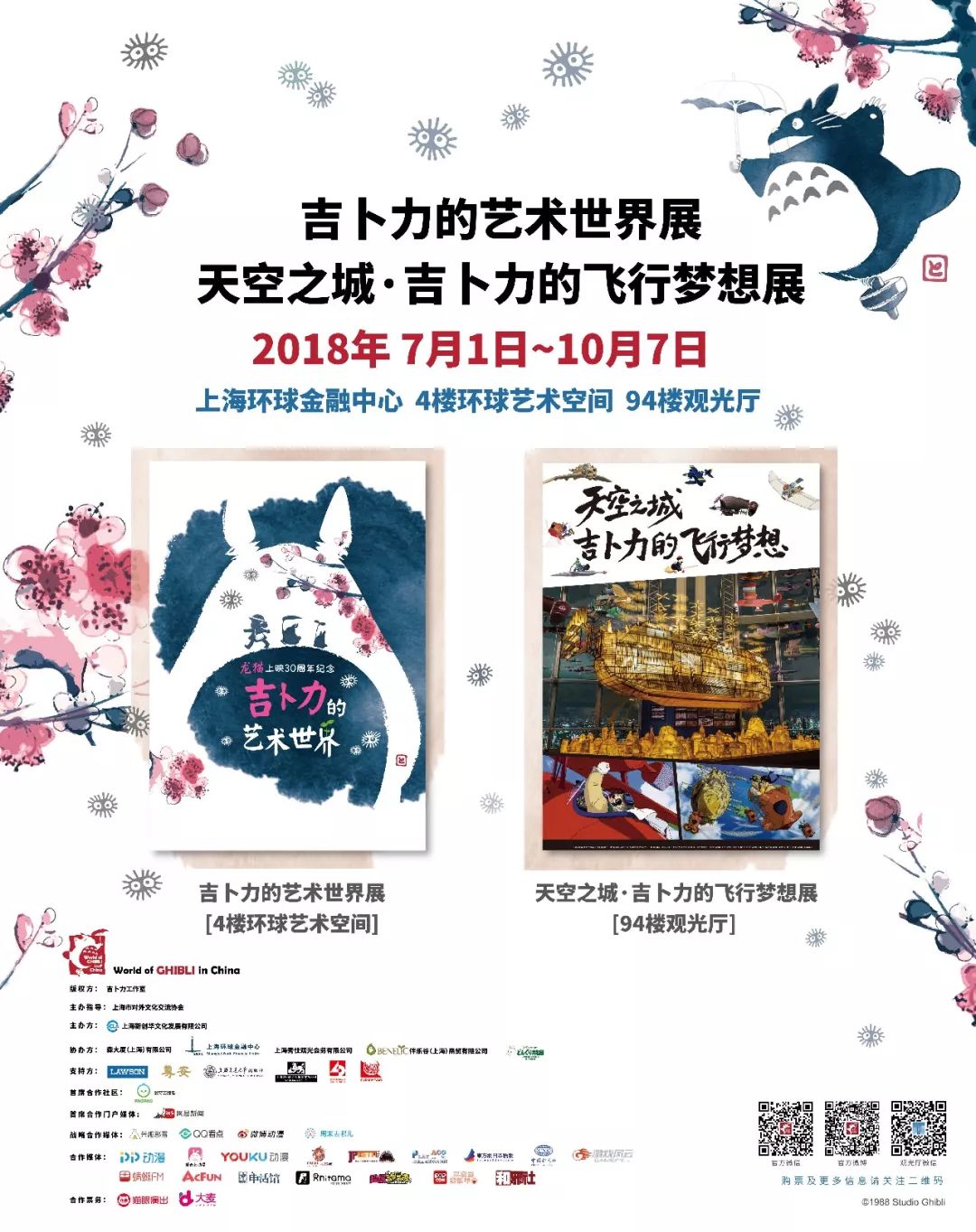 【展会详情】 名称:龙猫上映30周年纪念—吉卜力的艺术世界 天空之城-吉卜力的飞行梦想 时间:2018年7月1日(周日)~10月7日(周日) 地点:上海环球金融中心(上海市浦东新区世纪大道100号) 详 情: