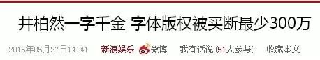 而且,井柏然的字体被收购,还上过新闻。去年5月,就有新闻报道“井柏然字体3000字卖出300万”。