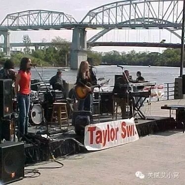2015年霉霉在自己的Instagram上发布的这张照片就是很早期的街边小舞台,没有很多的粉丝,只是在街边普通的表演,因为拉起一条小小的横幅,看起来比街头艺人要强一点,