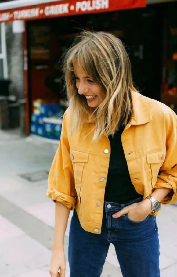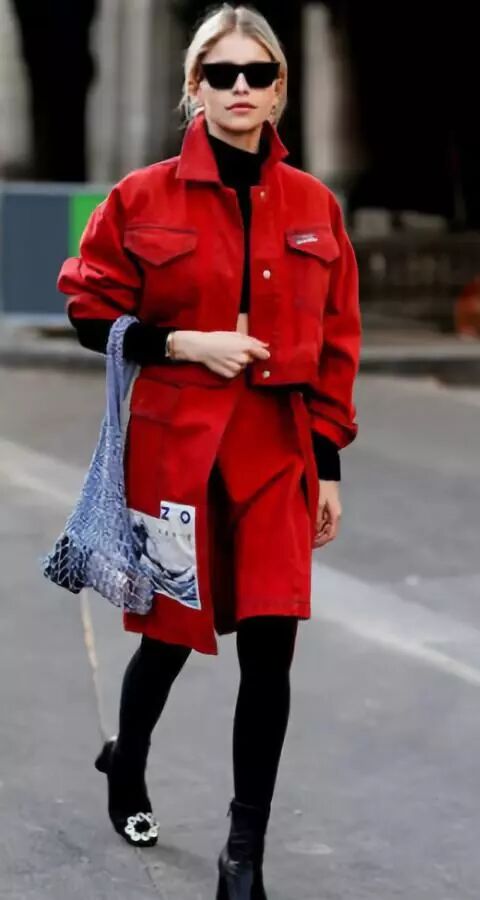 如果你想随便时髦一下,今年一定要入手彩色牛仔外套。彩色难搭配?以下两种攻略可供参考