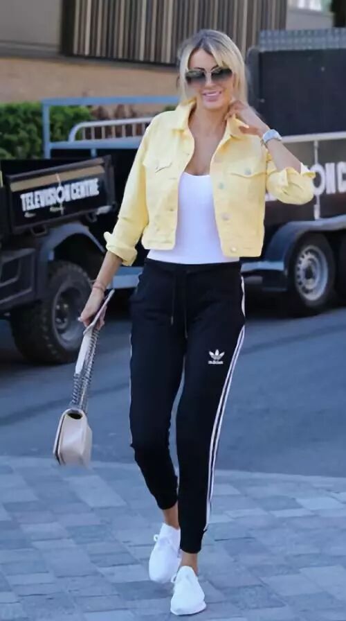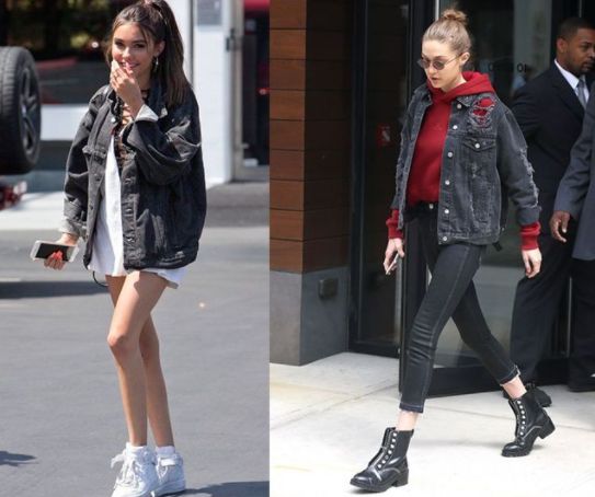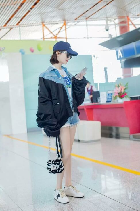 拼贴牛仔,大甜甜也爱上了,拼接运动衣外套特别个性,下身搭配短裤一点也不显臃肿。