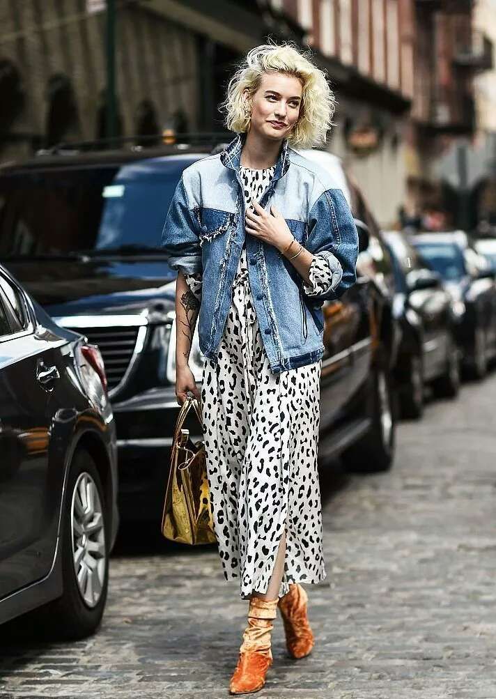 无论是斯文的小碎花,还是性感的流行豹纹,搭上牛仔外套就规避了一切出格的尴尬。