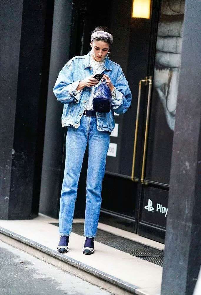 普通的牛仔外套,叠穿牛仔裤,时髦指数立马翻倍。
